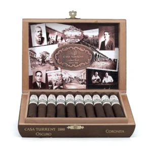 Casa Turrent 1880 Oscuro Coronita: Aged 10-12 years, rich flavours of cinnamon, pepper, and wood, transitioning to hazelnut and cacao, finishing with lingering spices.
