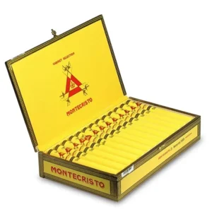 Montecristo Tubos cigars encased in an eye-catching cedar box, from the esteemed Habanos brand, offer a rich blend of cedar and leather notes for a complex.