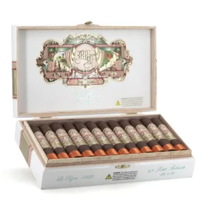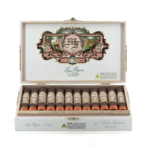 My Father Le Bijou 1922 Petit Robusto: A short, dark robusto with an earthy profile, featuring salt-and-pepper notes and charred wood, culminating in an ashy finish.