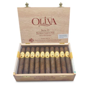 The Oliva Serie O Maduro Robusto offers full-bodied smoothness with notes of dark tobacco, spice, and cedar, wrapped in a Connecticut Broadleaf for a rich smoking experience.