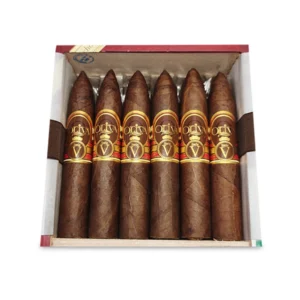 Oliva Serie V Belicoso boasts a rich Habano Sun Grown wrapper and aged Nicaraguan ligero blend. This full-bodied cigar delivers layers of coffee, spice, and dark chocolate.