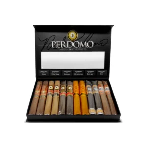 Perdomo Connoisseur Award-Winning Sampler is a 12-cigar collection features six premium blends with aged Nicaraguan tobaccos, offering rich flavours like cedar, coffee, and cocoa