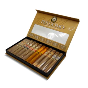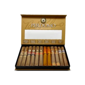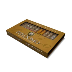 Perdomo Connoisseur Connecticut Collection Sampler features six blends with golden Ecuador Connecticut wrappers, offering creamy, nutty flavours like cedar and coffee bean