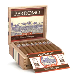 Perdomo Lot 23 Natural Sun Grown features 5-year-aged Cuban-seed Nicaraguan wrappers, offering a smooth, spicy smoke with nutty flavours and hints of cedar and spice.