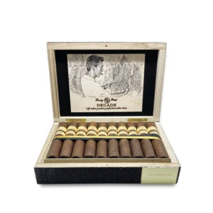 Rocky Patel Decade The Emperor: Medium-full bodied premium with Ecuadorian Sumatra wrapper & Nicaraguan fillers. Notes of earth, fresh bread & dark coffee define this masterpiece.