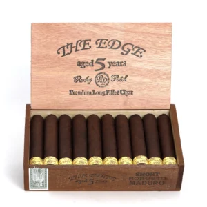 Rocky Patel The Edge Maduro Short Robusto: medium-bodied with a 5-year-aged Costa Rican Maduro wrapper, delivering rich notes of spice, oak, and coffee in every puff.