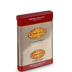 Romeo Y Julieta Club Kings, medium-strength Marevas from Vuelta Abajo, are presented in retro metal boxes, blending 70s nostalgia with modern elegance for a indulgent smoke.